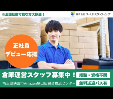 【20代,30代活躍中】【Amazon狭山広瀬台】倉庫管理スタッフ|正社員|未経験歓迎|車通勤可[日勤・夜勤専属]