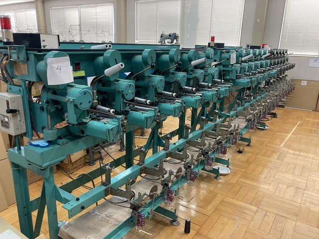 機械を使って刺繍糸をボビンに巻き取るをする作業
