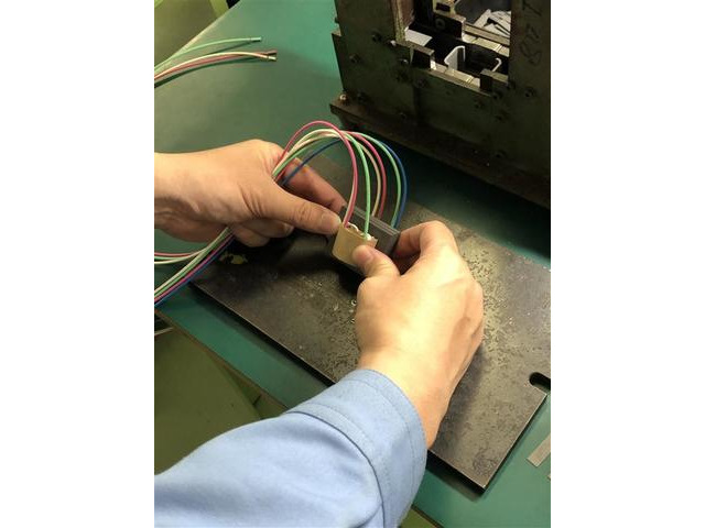 ・コイルとコア(鉄板)を組合せ、配線を行う組立作業