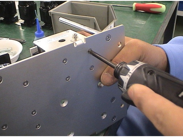 電動ドライバーや圧着工具を使用し、