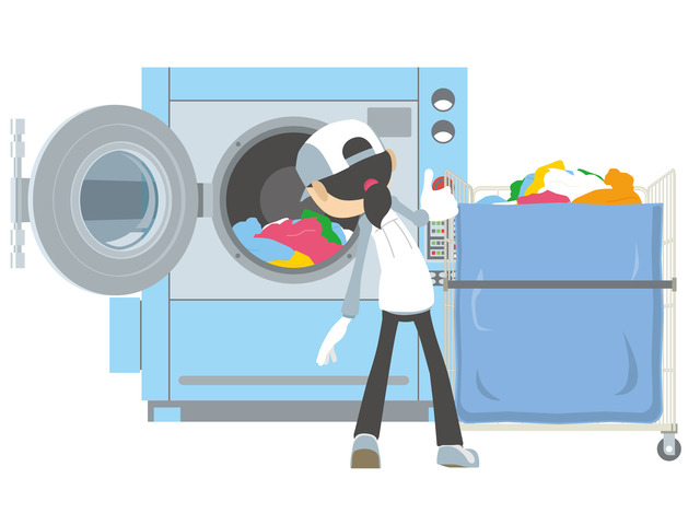 預かったクリーニング品を洗濯機に入れる作業と、洗い終わった洗濯物を取り出す作業になります