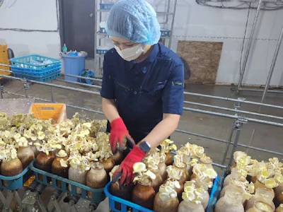 お任せするのは、キノコ栽培の現場での