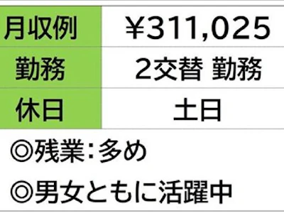 - 時給 1,300円以上 【給与】 時給 1300 円 ☆月収例 311,025円♪〈所定168h×1300円+残業45h×1625円+深夜60h×325円〉 ※試用期間は2週間(時給の変動なし) ☆給与前払制度あり♪ お電話いただければ即振込み可能!毎週OK! お気軽にお使えいただけます。 【交通費】 ☆電車通勤の場合、通勤定期代(上限1万円まで)応援制度あります。 ☆通勤スクーター貸出(月3500円)あります。←これ、人気あります♪ ☆通勤自転車無料貸出あります。 ◆派遣が初めての方や、遠方からも安心してご応募ください! ◆夜間の面接や、お友達同士でのご応募もお気軽にご相談ください。